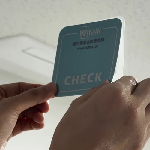 Wtalk専用シールフックは、高い保持力と耐久性を検証済みです。剥がす時もガラス面に粘着が残りません。また、安心して導入いただけるよう、2年間の保証を付けています。