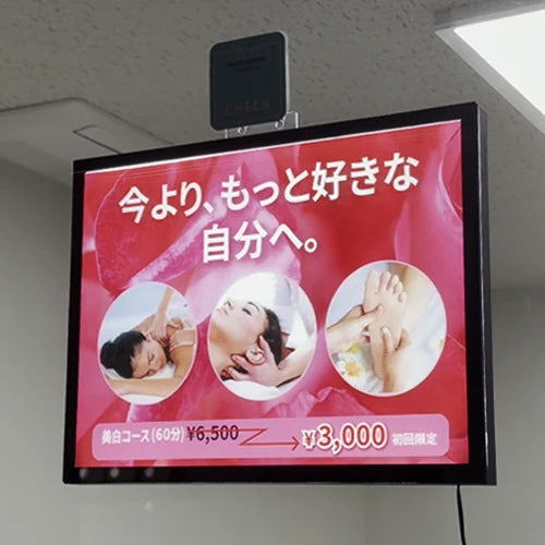 軽量コンパクトサイズのため、小規模店舗でもすぐに導入いただけます。施工不要で、誰でも”1分”で簡単に取り付け可能です。
